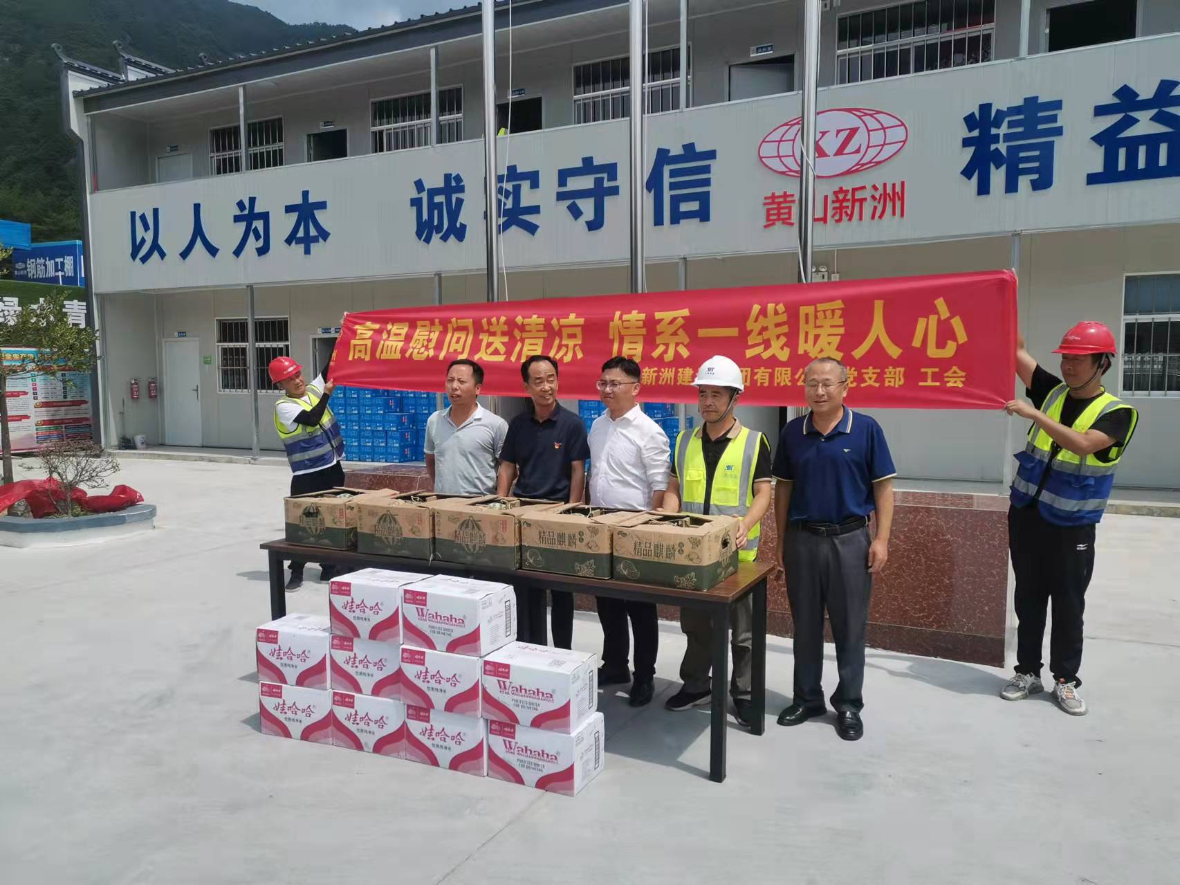 為切實(shí)維護(hù)高溫期間廣大一線職工的身體健康,2022年7月19日至20日,由集團(tuán)公司總經(jīng)理李利成、分管副總張遠(yuǎn)林、黨支部書(shū)記李惠明、安全部經(jīng)理吳正晨等組成慰問(wèn)小組,分別對(duì)各在建項(xiàng)目及路面施工現(xiàn)場(chǎng)分批、分區(qū)域送去西瓜、礦泉水等慰問(wèn)品,給奮戰(zhàn)在一線的職工送去了絲絲涼意,獻(xiàn)上了一份誠(chéng)摯的關(guān)懷。