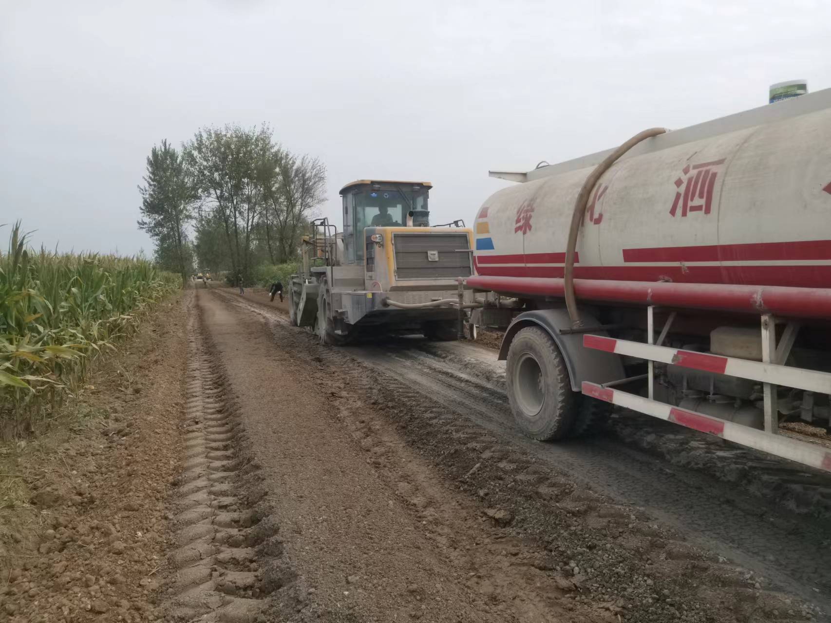 冷再生基層施工現(xiàn)場