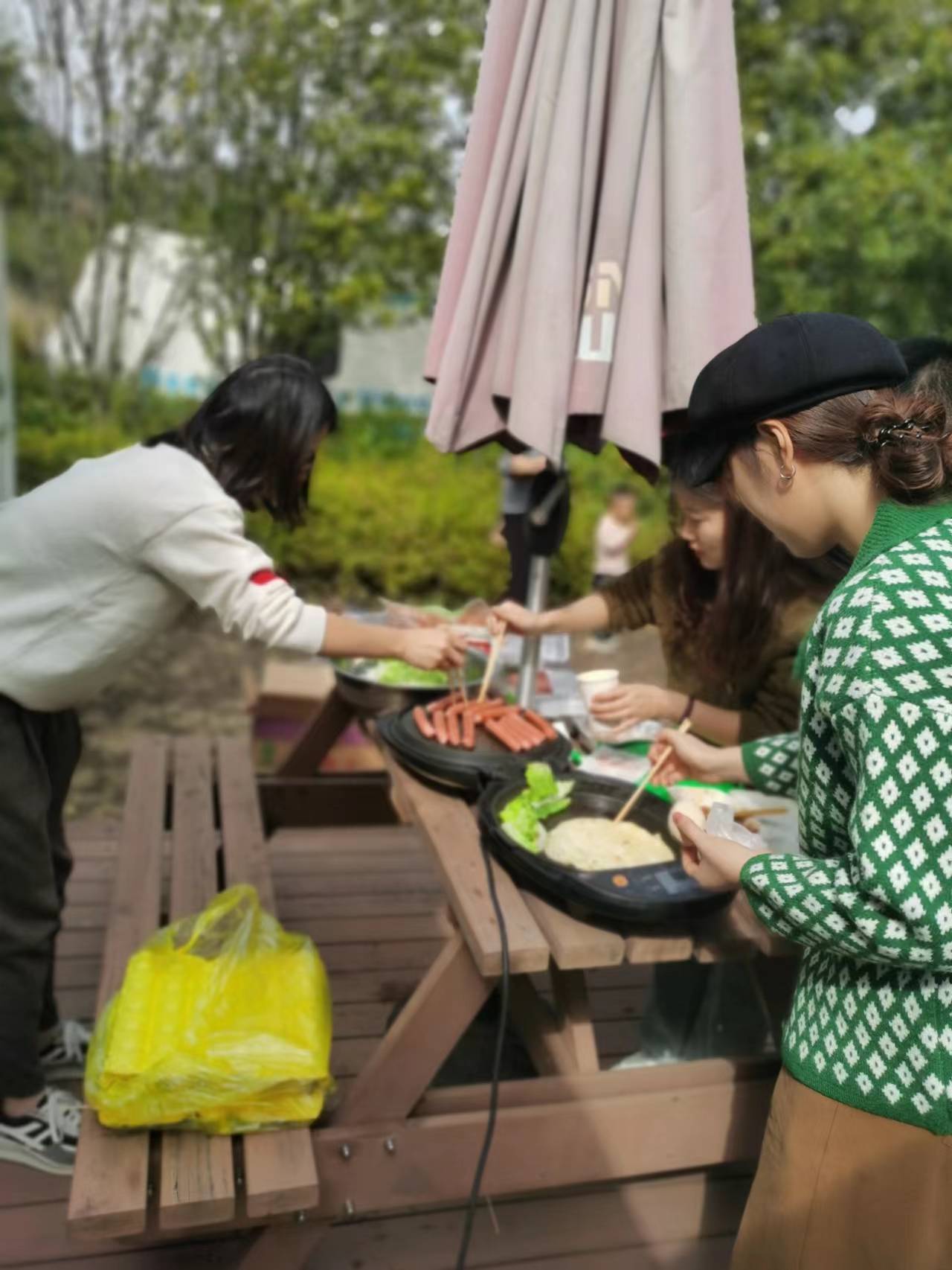 中午時(shí)分,順利抵達(dá)露營地,在美麗的黃山下,暫時(shí)告別緊張的工作旋律,緊隨著冬天的步履,走到戶外呼吸清新空氣,感受大自然的魅力。擺放烤架、分類食物、生火、烤制,大家相互配合,分工協(xié)作,一邊享受著美食,一邊分享著生活和工作中的趣事,歡聲笑語隨著縷縷炊煙縈繞在空中,談笑間,忘卻了煩惱,緩解了疲勞,充分體驗(yàn)了野外集體生活的樂趣。