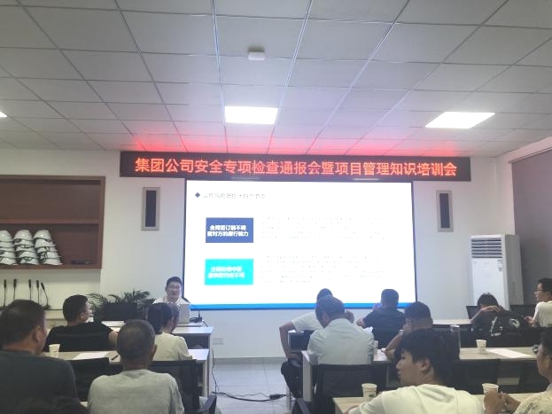 為積極防范各類事故發(fā)生,強化風(fēng)險意識,確保各在建項目施工安全穩(wěn)定,集團公司于7月下旬組織開展了安全生產(chǎn)專項檢查,并于2023年8月19日在綠洲公司二樓會議室召開了關(guān)于安全專項檢查通報會暨項目管理知識培訓(xùn)會。會議由集團公司分管安全副總經(jīng)理張遠林主持,黨支部書記李惠明、法務(wù)部、安全部、財務(wù)部、綜合辦公室、人力資源部、工程部及項目管理人員共計41人參會。