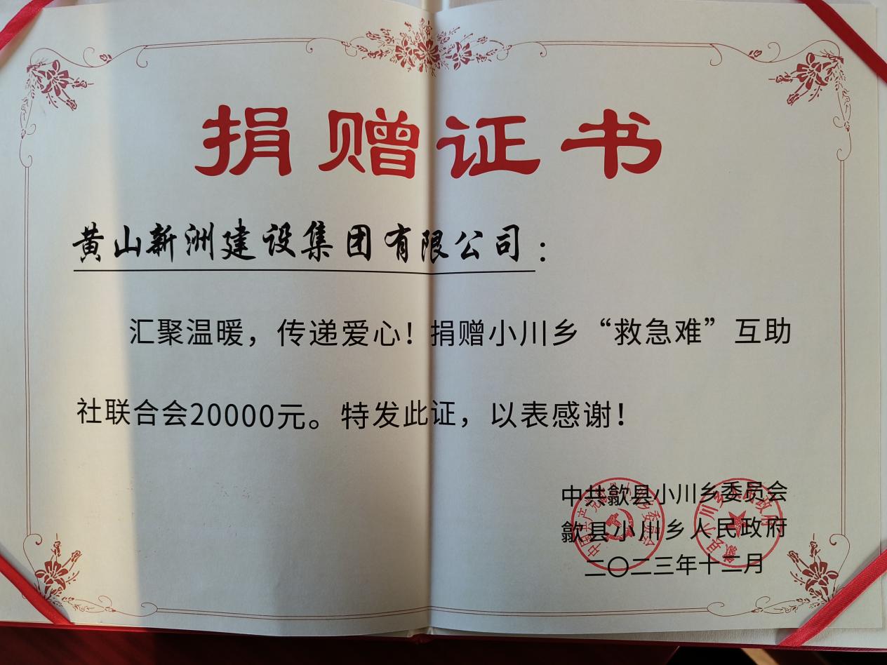 12月8日上午,來自17位愛心企業(yè)家和愛心人士齊聚歙縣小川鄉(xiāng)參加“救急難”互助社聯(lián)合會成立暨慈善捐贈儀式,公司黨支部書記李惠明代表黃山新洲建設(shè)集團有限公司向互助聯(lián)合會捐款2萬元。