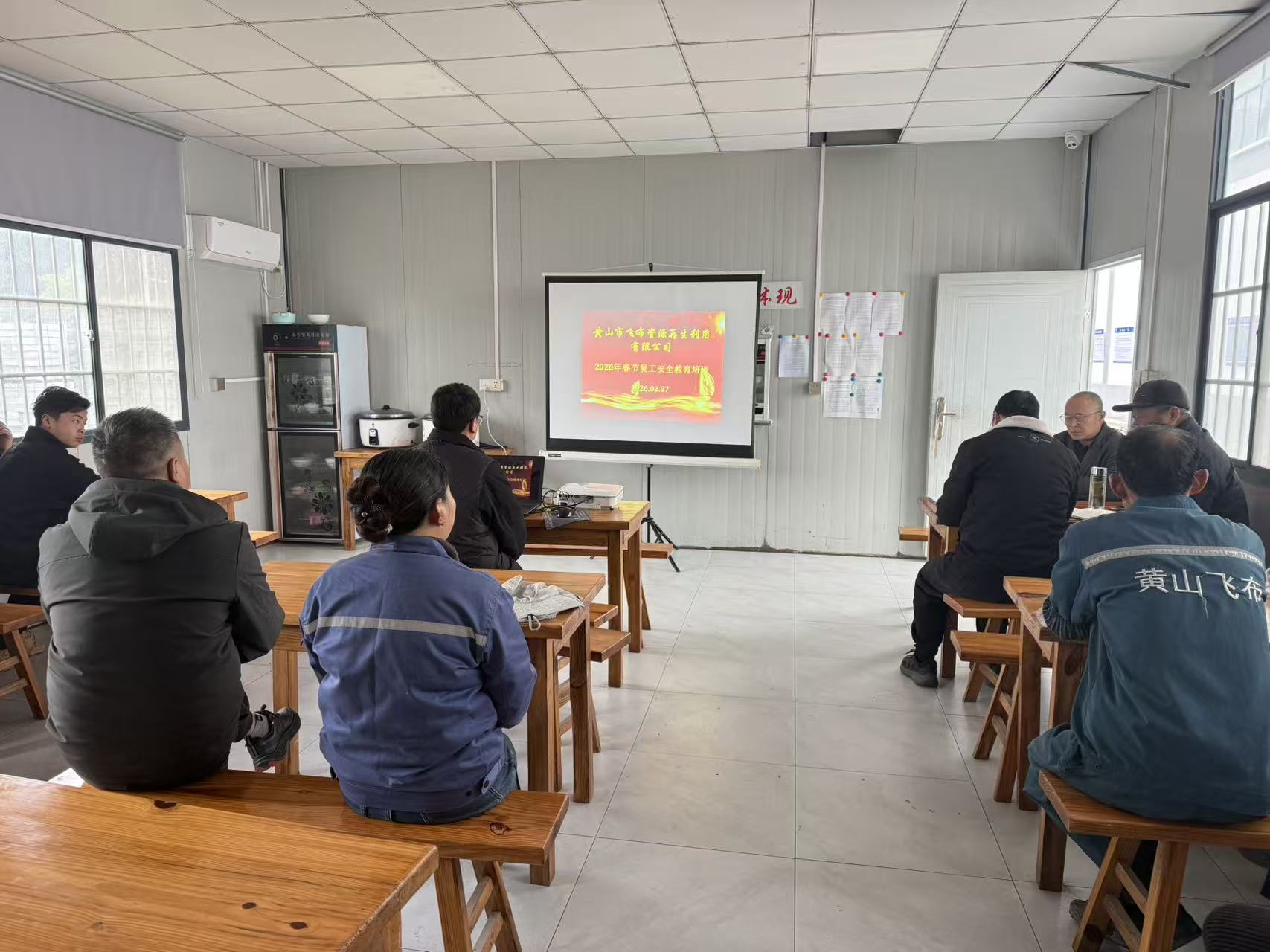 為貫徹落實集團公司安全會議精神,進一步提高黃山市飛布資源再生利用有限公司廣大職工的安全意識,根據(jù)集團公司年度工作計劃和安全生產(chǎn)教育培訓(xùn)工作安排,于2026年2月27日在歙縣飛布公司組織召開2026年飛布公司安全生產(chǎn)教育工作會議暨2026年春節(jié)復(fù)工安全教育培訓(xùn)。會議由飛布公司負責(zé)人汪淼組織,安全科負責(zé)會議實施。參加本次會議的有飛布公司管理人員、機械操作手及施工作業(yè)人員,共計二十一人。