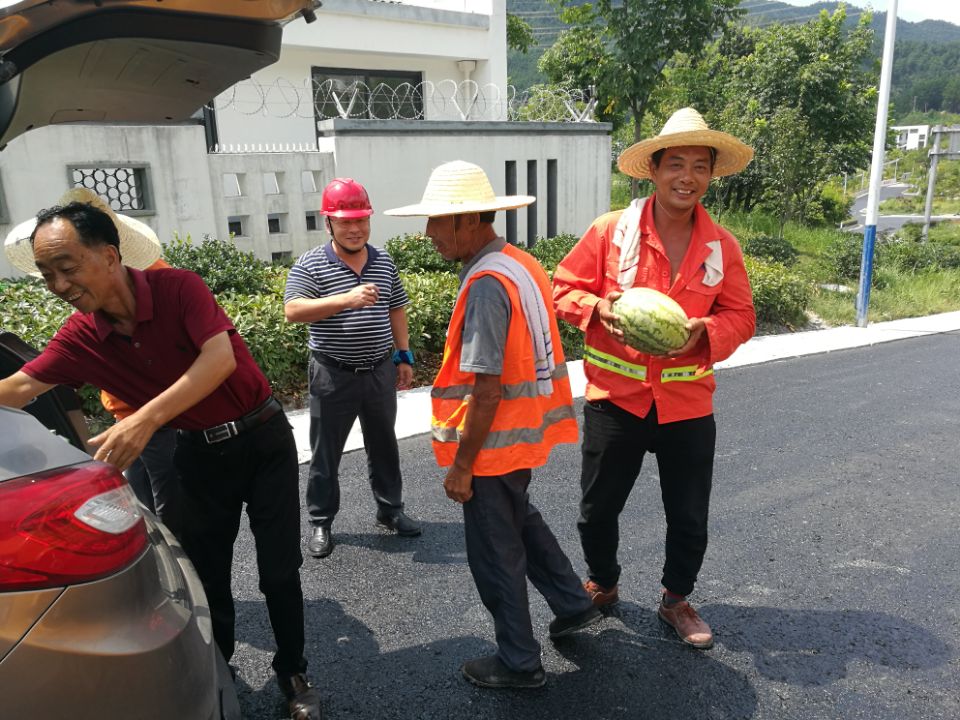 本次專項(xiàng)檢查活動(dòng)涉及到瀝青拌合站及三個(gè)瀝青作業(yè)施工班組、八個(gè)在建項(xiàng)目,安全環(huán)保部經(jīng)理吳正晨向現(xiàn)場(chǎng)負(fù)責(zé)人提出高溫季節(jié)施工要注意大型機(jī)械的防護(hù)保養(yǎng)工作,確保工人的安全出行,并做好相應(yīng)防暑降溫工作,強(qiáng)調(diào)了避開高溫時(shí)段作業(yè),黨支部書記李惠明向現(xiàn)場(chǎng)施工人員表示慰問,并發(fā)放防暑降溫物品西瓜,仁丹,礦泉水等。